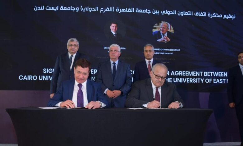 بروتوكول تعاون بين جامعة القاهرة وجامعة إيست لندن في مجال الدرجات العلمية المزدوجة بجامعة القاهرة الدولية