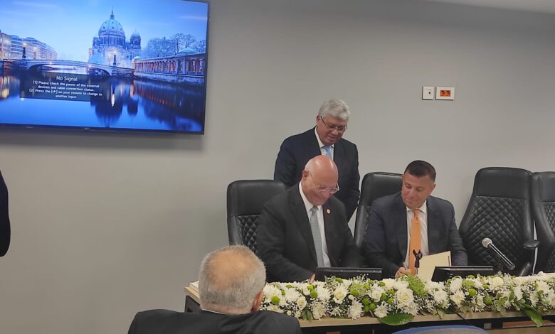 وقع الدكتور جمال سوسة ، رئيس جامعة بنها، والدكتور محمود المتينى ، رئيس جامعة عين شمس ، بروتوكول تعاون بين الجانبين في مجال التبادل الطلابي والتعاون المشترك.