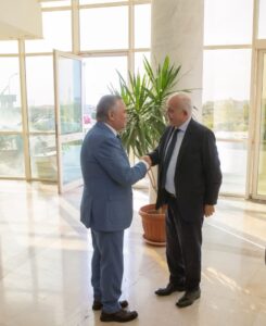 التقي الأستاذ الدكتور رضا حجازي رئيس جامعة الريادة للعلوم والتكنولوجيا الاستاذ الدكتور أشـــــــــرف حنيجــــــل رئيس جامعة السويس في مكتبه لبحث التعاون المشترك بين الجامعتين من خلال بروتوكول يعززالشراكة العلمية والبحثية وتبادل الخبرات في مجالات تطوير البرامج الأكاديمية وتنفيذ مشروعات مشتركة تخدم المجتمع وتواكب متطلبات سوق العمل والعمل علي رفع كفاءة قدرات أعضاء هيئة التدريس .