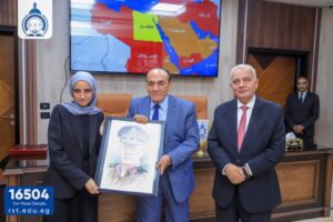 كرم الأستاذ الدكتور رضا حجازي رئيس الجامعة االلواء الدكتور سمير فرج وقدم له درع الجامعة تقديرًا لسيادته ولمجهوداته فى خدمة الوطن ، وأهدت الطالبة بسمة محمد عثمان من كلية التمريض بورترية من تنفيذها وبعدها تم التقاط العديد من الصور الجماعية والتذكارية لأعضاء هيئة التدريس والطلاب مع اللواء أركان حرب الدكتور سمير فرج .