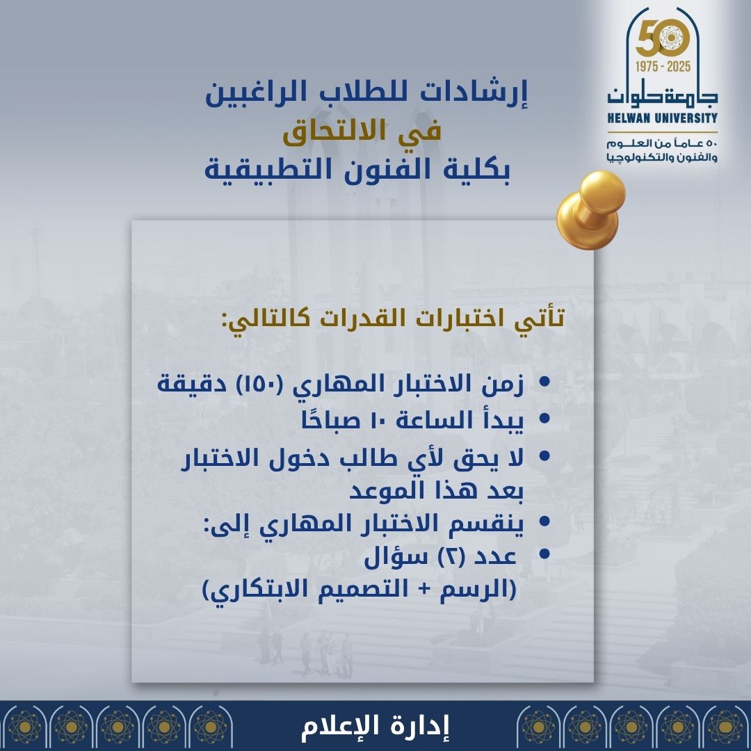 جامعة حلوان تنشر إرشادات هامة لطلاب الثانوية العامة الراغبين في الالتحاق بكلية التربية الموسيقية لعام 2025