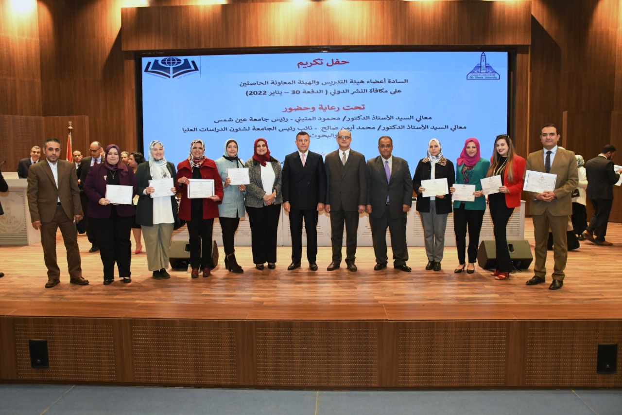 في إطار الاحتفالية التي ينظمها قطاع الدراسات العليا والبحوث بجامعة عين شمس برئاسة د ايمن صالح نائب رئيس الجامعة لشئون الدراسات العليا والبحوث لتكريم الحاصلين على مكافأة النشر الدولي قام الدكتور محمود المتيني رئيس جامعة عين شمس ، و.د عبد الفتاح سعود نائب رئيس الجامعة لشئون التعليم والطلاب، بتكريم ( ١٠٧٨) عضو هيئة تدريس من مختلف كليات الجامعة.