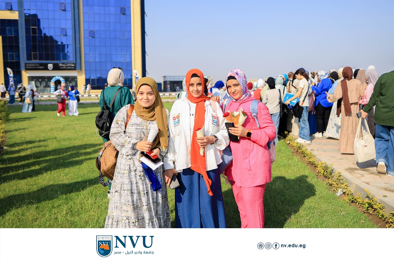 جامعة وادي النيل مصر تحتفل ببدء العام الدراسي الجديد وتستقبل الطلاب بالورود والهدايا
