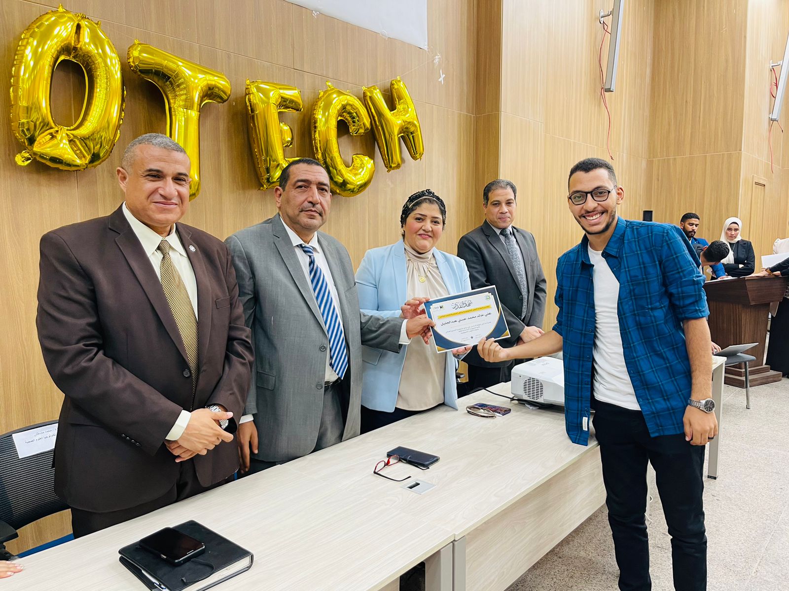 و تم عرض فيديو تعريفي عن الجامعة وطبيعة الدراسة بها و التدريبات العملية و الانشطة الطلابية ،وتم تكريم الطلاب الاوائل من كل برنامج دراسي و الطلاب المميزين بالانشطة الطلابية عن العام الدراسي الماضي،وعرض مجموعة من الطلاب مشاريعهم الابتكارية عن كل برنامج.