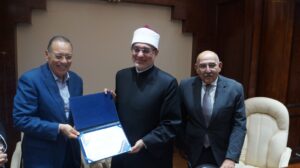 وفي ختام الندوة، قدم كل من الأستاذ الدكتور ممدوح مصطفى غراب رئيس الجامعة، والأستاذ الدكتور هشام تمراز نائب رئيس الجامعة لشئون خدمة المجتمع وتنمية البيئة، درع الجامعة لفضيلة المفتي تقديرًا لدوره التنويري وجهوده في نشر الفكر الوسطي ومواجهة الفكر الهدّام.