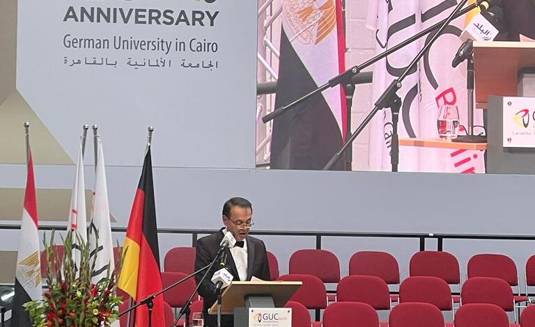 وأشار إلى أن إنشاء جامعة ثنائية القومية يدعم اظهار البحث العلمي الألماني والتعليم الألماني في المنطقة العربية وشمال أفريقيا، باعتباره تعاون استراتيجي مشيرا إلى أن هذه الرؤية أدت إلى أن يتحقق التعاون الوثيق بين الجامعات في ألمانيا ومصر، وأن هدفنا هو تعزيز التبادل الإنساني والفكري بين مصر وألمانيا.