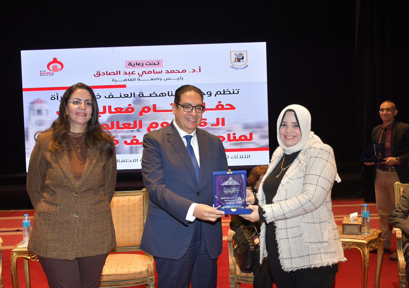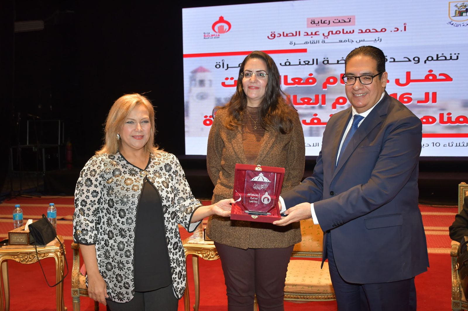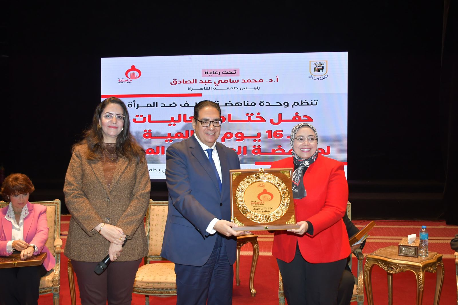 نظمت وحدة مناهضة العنف ضد المرأة بجامعة القاهرة، برعاية وحضور الدكتور محمد سامي عبد الصادق، حفل ختام فعاليات حملة الـ 16 يوما العالمية لمناهضة العنف ضد المرأة، وحضور الدكتور أحمد رجب نائب رئيس جامعة القاهرة لشئون التعليم والطلاب، والدكتورة أميرة تاوضروس مدير وحدة مناهضة العنف ضد المرأة، والفنانة أنوشكا، والإعلامية فريدة الزمر، والدكتور أيمن جعفر زهري عضو المجلس القومي لحقوق الإنسان، والدكتور أسامة عشم المدرب الدولي والمحاضر بأكاديمية الشرطة، ولفيف من عمداء الكليات، وأعضاء هيئة التدريس والعاملين والطلاب.