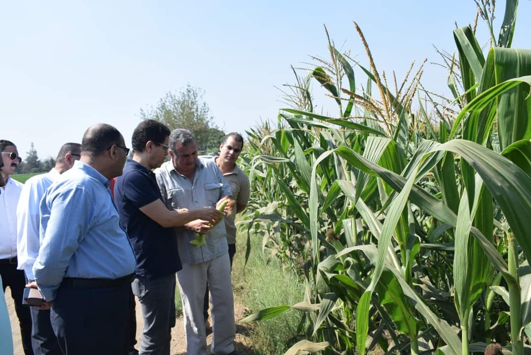واستهل ” الجيزاوى” بتفيد عدداً من المحاصيل الزراعية ومنها محصول “الفول الصويا” والذي تم زراعته على مساحة 8.5 فدان بصنف جيزه 111 والمتوقع الحصول على إنتاجية بمتوسط 1.5 طن للفدان ، وكذلك تفقد محصول “السمسم” وبلغت مساحة زراعته 9 أفدنة و المنزرع بصنف جيزة 32 ، بالإضافة الى تفقد زراعة 8 أفدنة من الذرة الشامية بأصناف جولد 21 أصفر وصنف ياقوت 5 أحمر، والمتوقع الحصول على إنتاجية 4 طن للفدان.