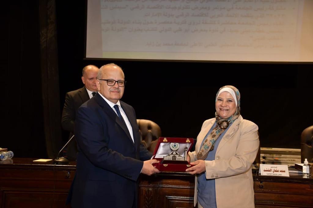 وكرم الدكتور محمد الخشت، خلال مجلس الجامعة، كلا من الدكتورة إيمان بكر عميدة كلية الطب البيطري لجهودها المتميزة مع فرق العمل ووكلاء الكلية والتى أدت إلى حصول الكلية على اعتماد المنظمة العالمية للصحة الحيوانية “WOAH” كمركز تعاون مرجعي دولي للمنظمة بمنطقة الشرق الأوسط، والدكتورة حنان جنيد عميدة كلية الإعلام، لجهودها البارزة مع فرق العمل والوكلاء في النهوض بالكلية وحصولها على الاعتماد الدولي لجميع برامجها الدراسية من مؤسسة AQAS الألمانية، كما وجه الشكر للدكتورة ليلى عبد المجيد لدورها البارز في الحصول على الاعتماد الدولي.