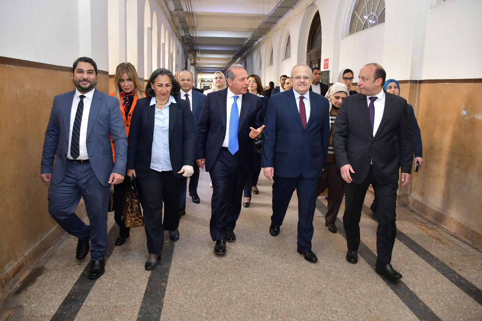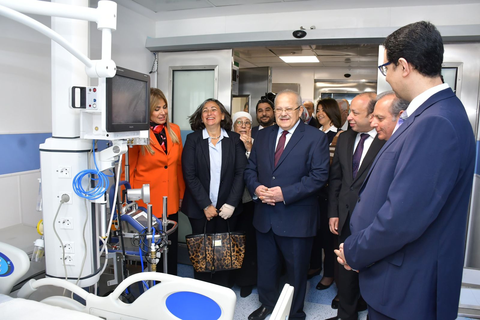 افتتح الدكتور محمد الخشت رئيس جامعة القاهرة، والأستاذ هشام عكاشة رئيس مجلس إدارة البنك الأهلي، عددًا من مشروعات التطوير والتجديدات بكلية طب قصر العيني، ضمن عمليات التطوير والتحديث الشاملة التي تشهدها مستشفيات جامعة القاهرة، وفي إطار الخطة الاستراتيجية الشاملة التي تتبناها الدولة المصرية لدعم وتطوير المستشفيات الجامعية بما يساهم في النهوض بالمنظومة الصحية والارتقاء بمستوى الخدمات الطبية المُقدمة للمواطنين.