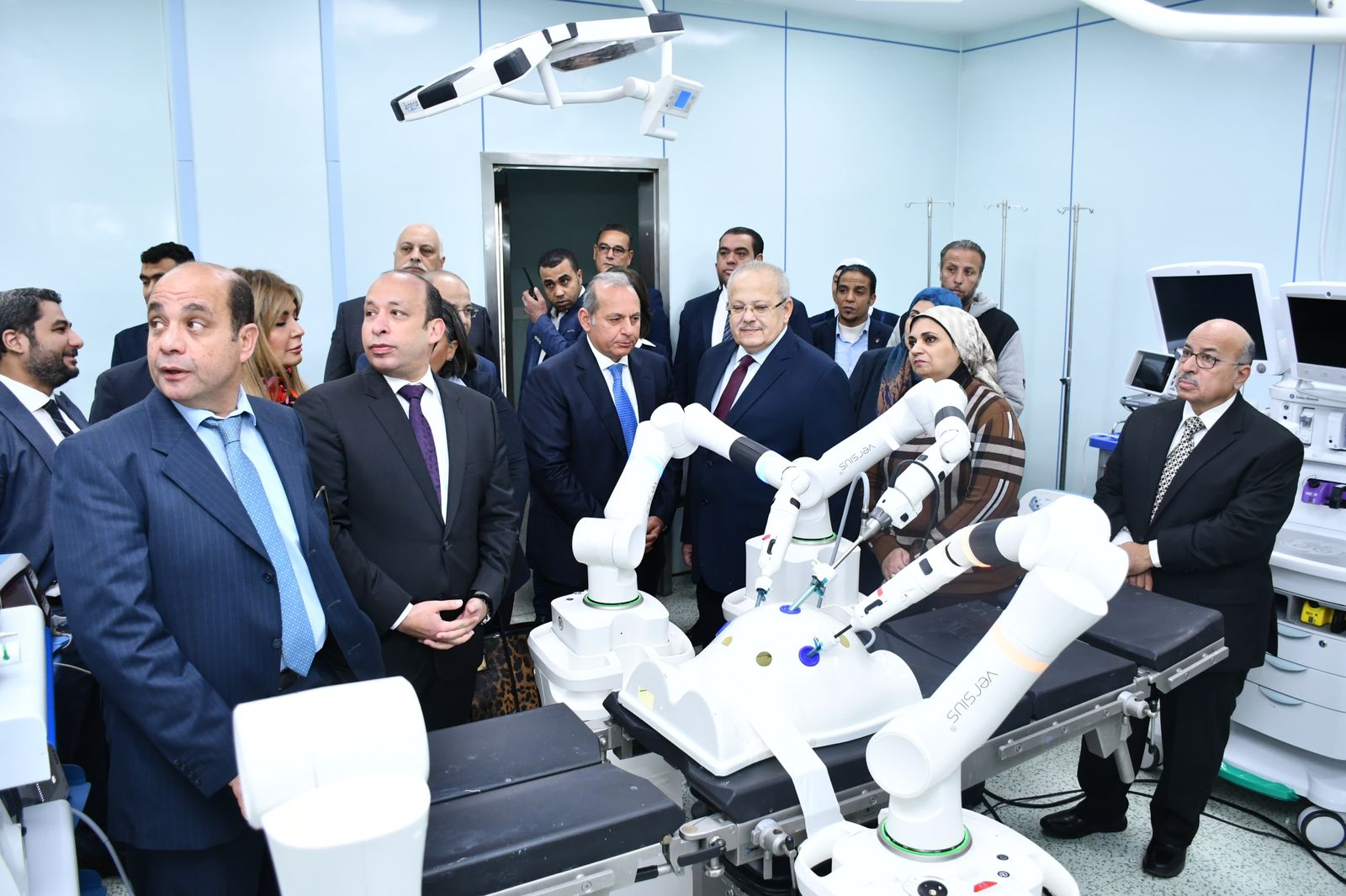 كما تضمنت الافتتاحات، استخدام الروبوت الجراحي في إجراء الجراحات المتقدمة بالمجان وبدعم من البنك المركزي المصري، وهو يعد جهازًا فريدًا من نوعه ويعتبر الجهاز الثالث المتواجد في مصر، والأول في تقديم خدماته مجانًا في سبق جديد لمستشفيات جامعة القاهرة مما يتيح للمريض نسب شفاء أعلى وفترة إقامة أقل واحتياجا أقل لنقل الدم.