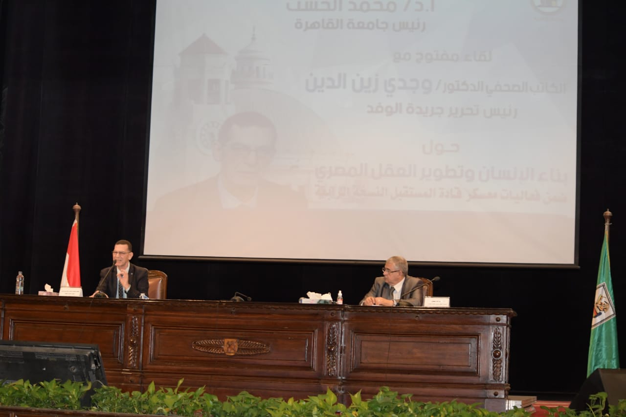ألقى الكاتب الصحفي الكبير الدكتور وجدي زين الدين رئيس تحرير جريدة الوفد، محاضرة حول إعادة بناء الإنسان وتطوير العقل المصري، وذلك ضمن فعاليات النسخة الرابعة من معسكر قادة المستقبل الذي تنظمه جامعة القاهرة تحت رعاية الدكتور محمد عثمان الخشت رئيس الجامعة، وبحضور الدكتور عبدالله التطاوي مساعد رئيس الجامعة للشؤون الثقافية.