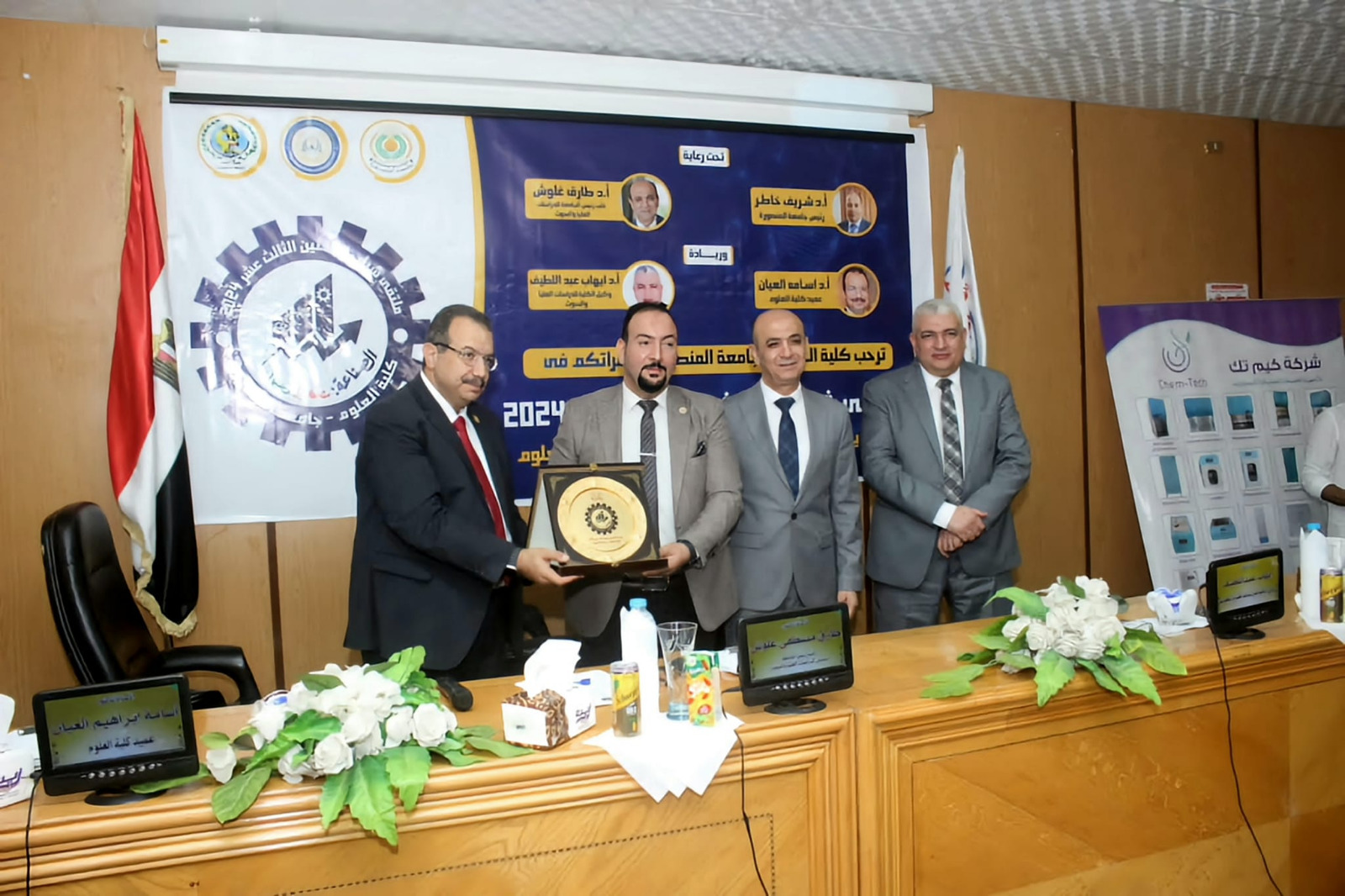 وتم تكريم رئيس مجلس إدارة كيم تكchem.tech على هامش الملتقى برعاية وحضور الأستاذ الدكتور معوض الخولي، رئيس جامعة المنصورة، والأستاذ الدكتور طارق غلوش، نائب رئيس الجامعة، والأستاذ الدكتور أسامة العيان عميد كلية العلوم، والأستاذ الدكتور إيهاب عبد اللطيف وكيل كلية العلوم للدراسات.