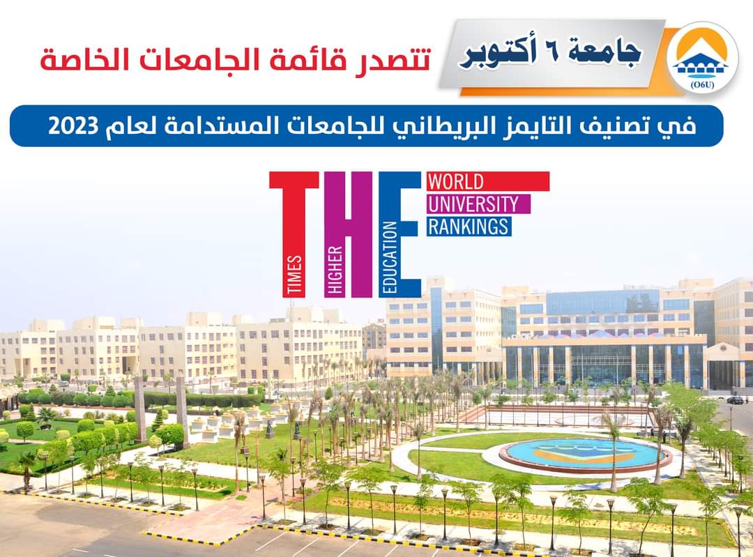 وأعلن الدكتو جمال سامي رئيس جامعة ٦ أكتوبر ان الجامعة احتلت المرتبة ٦٠١-٨٠٠ من بين ١٥٩١ جامعة عالمية تم ادراجها في تصنيف التايمز البريرطاني Times Higher Education لعام ٢٠٢٣ الذي يقيم أداء الجامعات حول العالم وفقًا لأهداف الأمم المتحدة للتنمية المستدامة. وتصدرت جامعة ٦ أكتوبر قائمة الجامعات الخاصة في مصر حيث احتلت المركز الأول مع جامعتين اخرين ما بين ١٤ جامعة خاصة تم ادراجها بهذا التصنيف والمركز الخامس المكرر بين ٣٧ جامعة مصرية.
