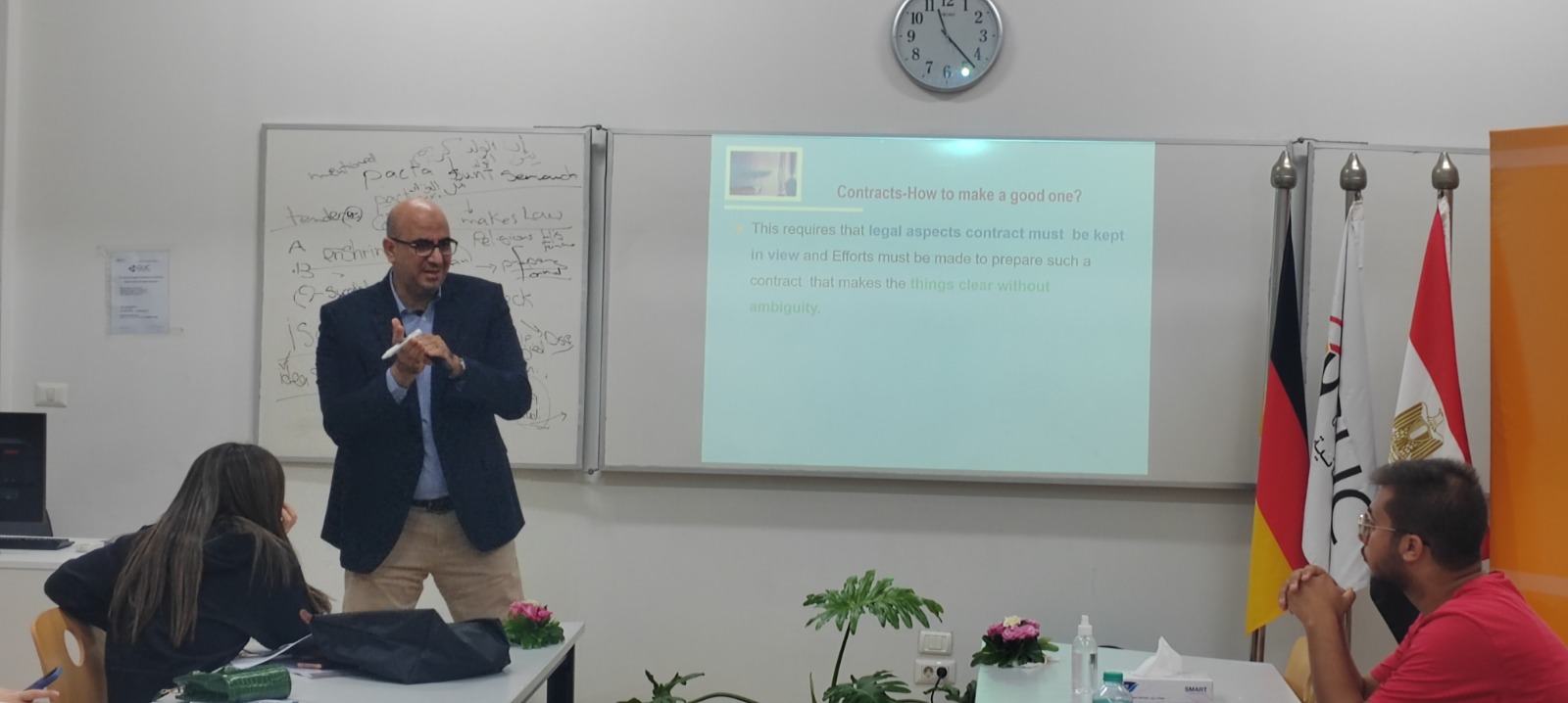 في إطار سعى الجامعة الألمانية بالقاهرة لإعداد جيل مميز قادر على مواجهة التحديات المستقبلية ، نظمت كلية الحقوق و الدراسات القانونية بالجامعة فاعليات اعمال البرنامج التدريبي المكثف لطلابها للعام الاكاديمى 2024-2025 ، حيث تضمن عقد عدد 9 ورش عمل تطبيقية لطلاب الفرق الدراسية الثانية والثالثة والرابعة بالكلية ، وجاءت تلك البرامج موازية ومعززة للمحتوى الأكاديمي وفقاً للخطة الدراسية بالكلية، مستهدفة تعزيز المعارف والمهارات القانونية للمتدربين، وذلك بمشاركة نخبة من رجال القضاء والخبراء فضلا عن العديد من كبرى مكاتب المحاماة.