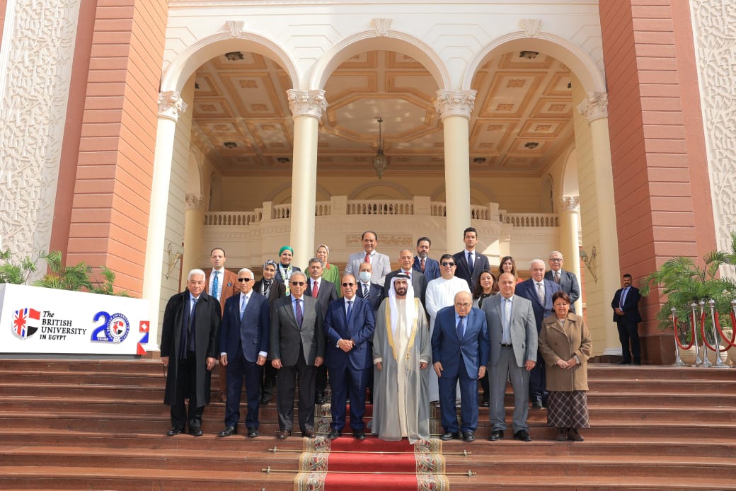 جاء ذلك بحضور نخبة من الشخصيات المرموقة، من بينهم السفير عمرو موسي عضو مجلس أمناء الجامعة البريطانية، والأستاذ الدكتور مصطفي الفقي عضو مجلس أمناء الجامعة، والأستاذ الدكتور يحيى بهي الدين، نائب رئيس الجامعة البريطانية للبحوث والمشروعات، والدكتور كريم عبد الرازق، مدير مركز الدبلوماسية العربية بالبرلمان العربي، والسفير محمود كارم، مدير مركز دراسات مصر والشرق الأوسط ونائب رئيس الجامعة للعلاقات الدولية، والسفير علي الحفني، مدير مركز مصر وإفريقيا، والأستاذ الدكتور محمد إسماعيل، مستشار رئيس الجامعة، والسيدة رشا مبروك، الرئيس التنفيذي للإعلام والتسويق، والأستاذ الدكتور طارق عباس، نائب رئيس الجامعة، والأستاذة الدكتورة ودودة بدران، نائب رئيس الجامعة، وعددًا من قيادات الجامعة.