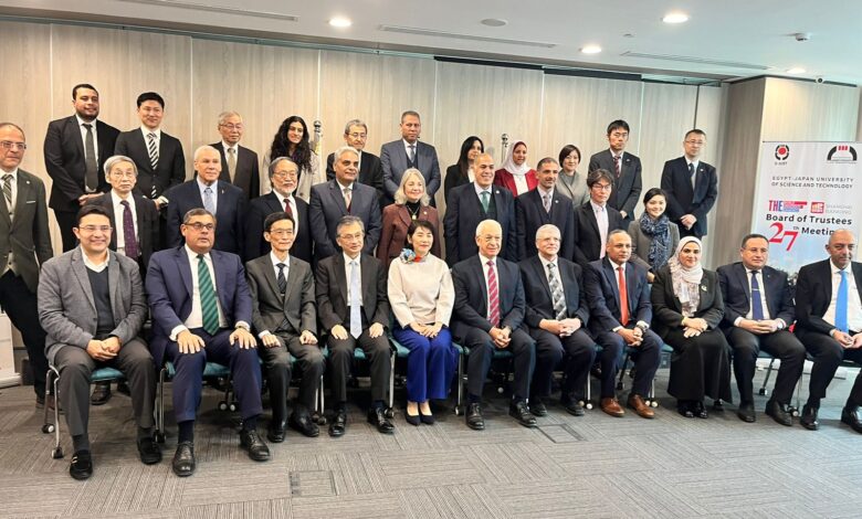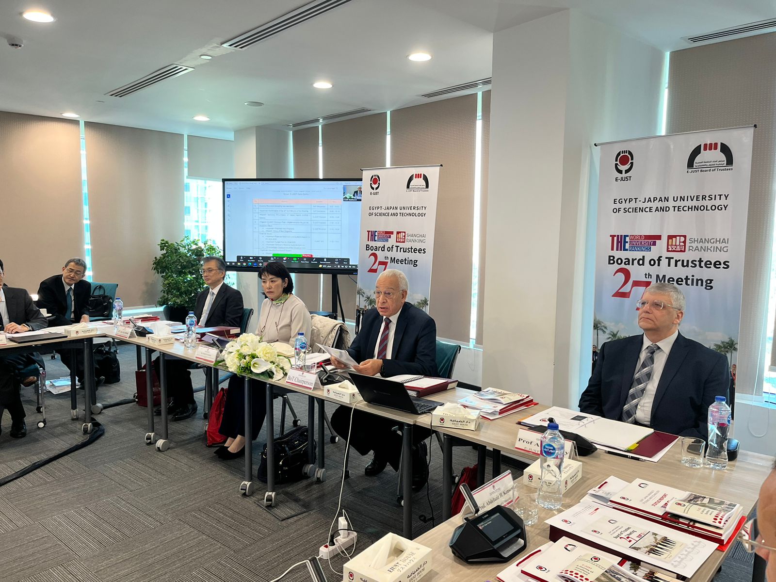 جاء ذلك خلال خلال اجتماع مجلس أمناء الجامعة المصرية اليابانية للعلوم والتكنولوجيا اليوم بحضور السيدة ايموتو ساتشيكو نائب رئيس هيئة التعاون الدولي الياباني (جايكا) والسفير اليابانى أوكا هيروشي، والدكتور شوجى هاشيموتونائب رئيس الجامعة لشئون العلاقات الإقليمية والدولية، والدكتور سامح ندا نائب رئيس الجامعة للتعليم والشئون الأكاديمية، والدكتور فوكودا