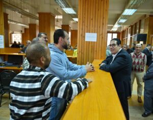 وخلال الجولة، التقى الدكتور محمد سامي عبدالصادق بعدد من الطلاب بمختلف الكليات، واستمع إلى آرائهم وملاحظاتهم بشأن العملية التعليمية والخدمات المقدمة لهم، كما حرص على لقاء عدد من أعضاء هيئة التدريس والعاملين والاستماع إلى احتياجاتهم في بيئة العمل، موجهًا بسرعة دراسة تلك الاحتياجات والعمل على تلبيتها، بما يسهم في تحسين بيئة العمل وجودة الخدمات داخل الجامعة.