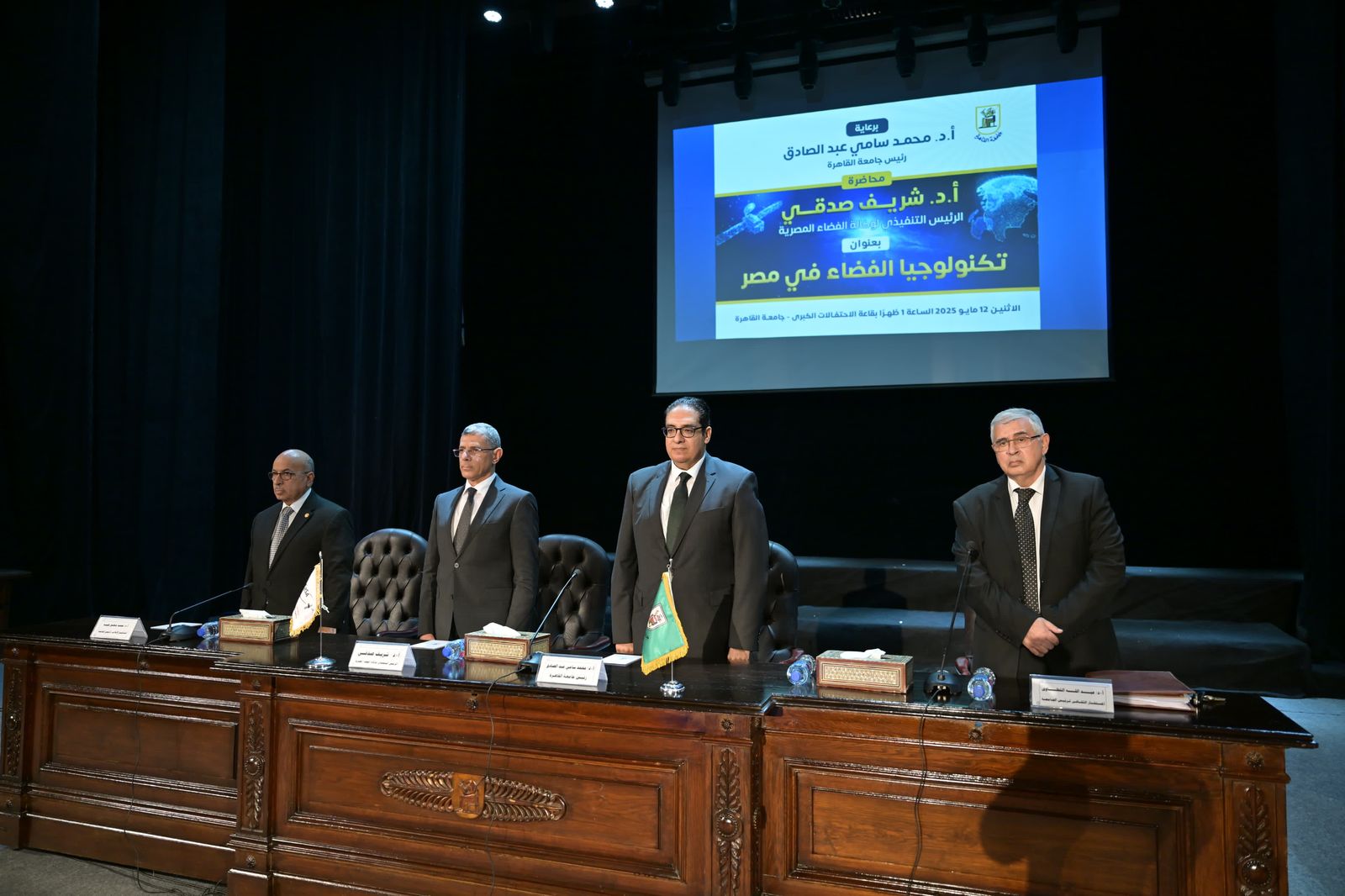 وفي مستهل كلمته، رحب الدكتور محمد سامي عبد الصادق بالدكتور شريف صدقي، أحد أبرز خريجي كلية الهندسة بالجامعة، ويمثل نموذجًا ملهمًا للكثير من الشباب. وأشار رئيس الجامعة إلى الحرص على تعزيز الشراكة مع وكالة الفضاء المصرية، لافتًا إلى أهمية تكامل الأدوار بين الجامعات والمؤسسات الوطنية الرائدة في مجالات التكنولوجيا المتقدمة باعتباره السبيل الأمثل لتحقيق التنمية المستدامة وبناء مجتمع المعرفة.