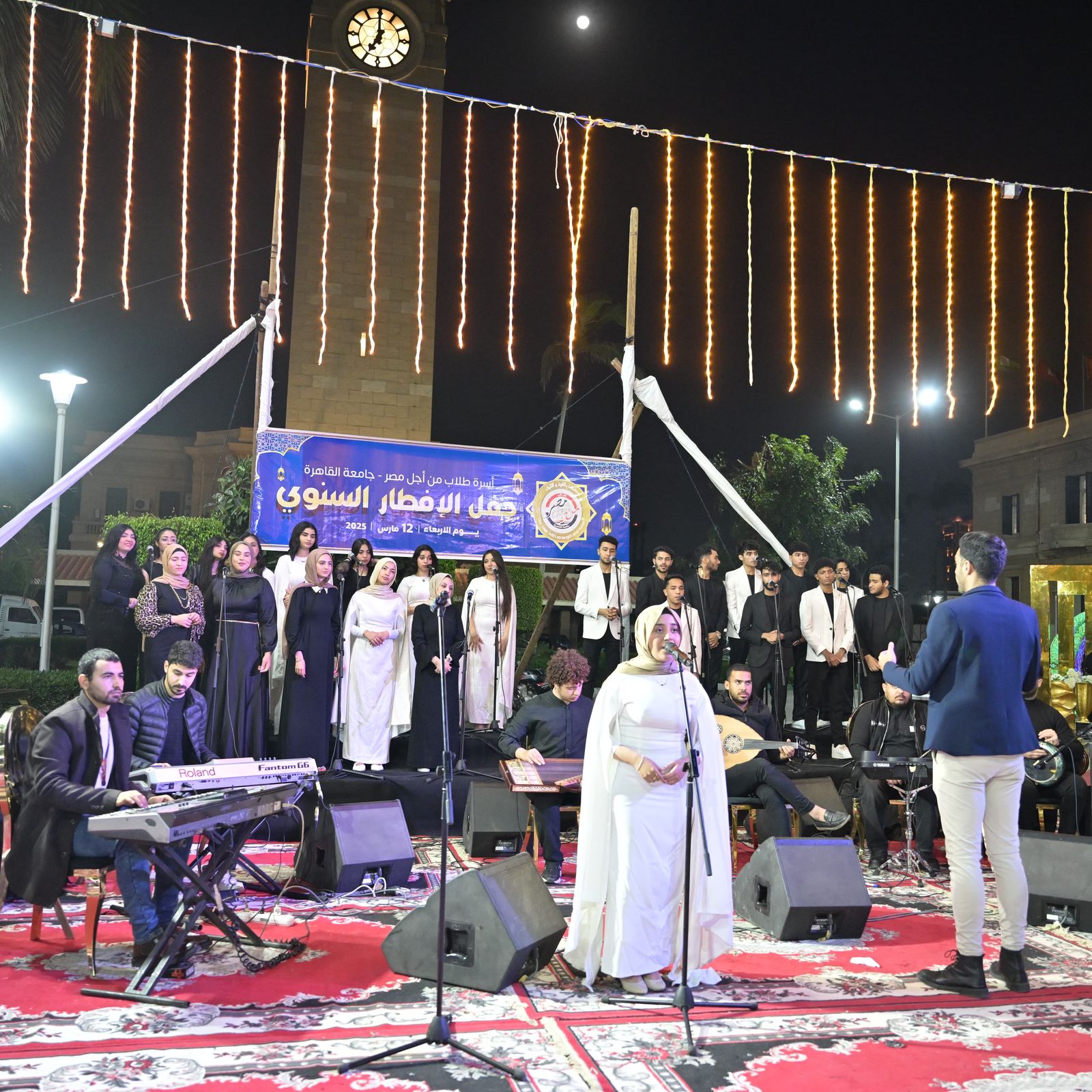 وعقب الإفطار، استمتع الحضور بأمسية رمضانية، تخللتها فقرات فنية متنوعة قدمها كورال جامعة القاهرة، حيث لاقت العروض تفاعلاً كبيرًا وأضفت أجواء احتفالية مبهجة على الحفل.