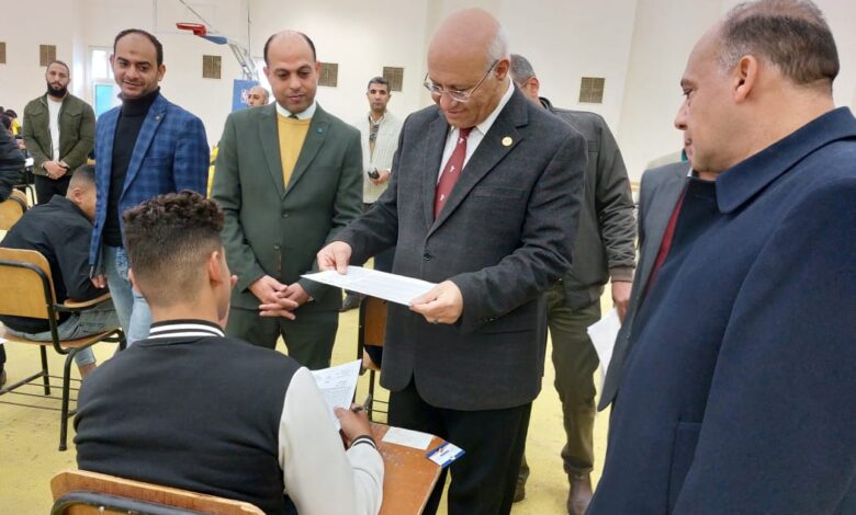 رئيس جامعة بنها يتفقد الامتحانات بكليات التربية الرياضية والعلاج الطبيعى والتربية