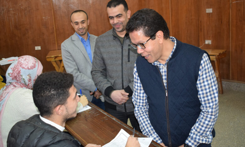 رئيس جامعة بنها يتفقد سير الامتحانات بكليات التجارة والتمريض والتربية