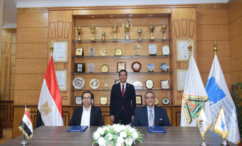 رئيس جامعة بنها يشهد توقيع بروتوكول تعاون بين كلية الفنون التطبيقية وغرفة صناعة منتجات الأخشاب والأثاث