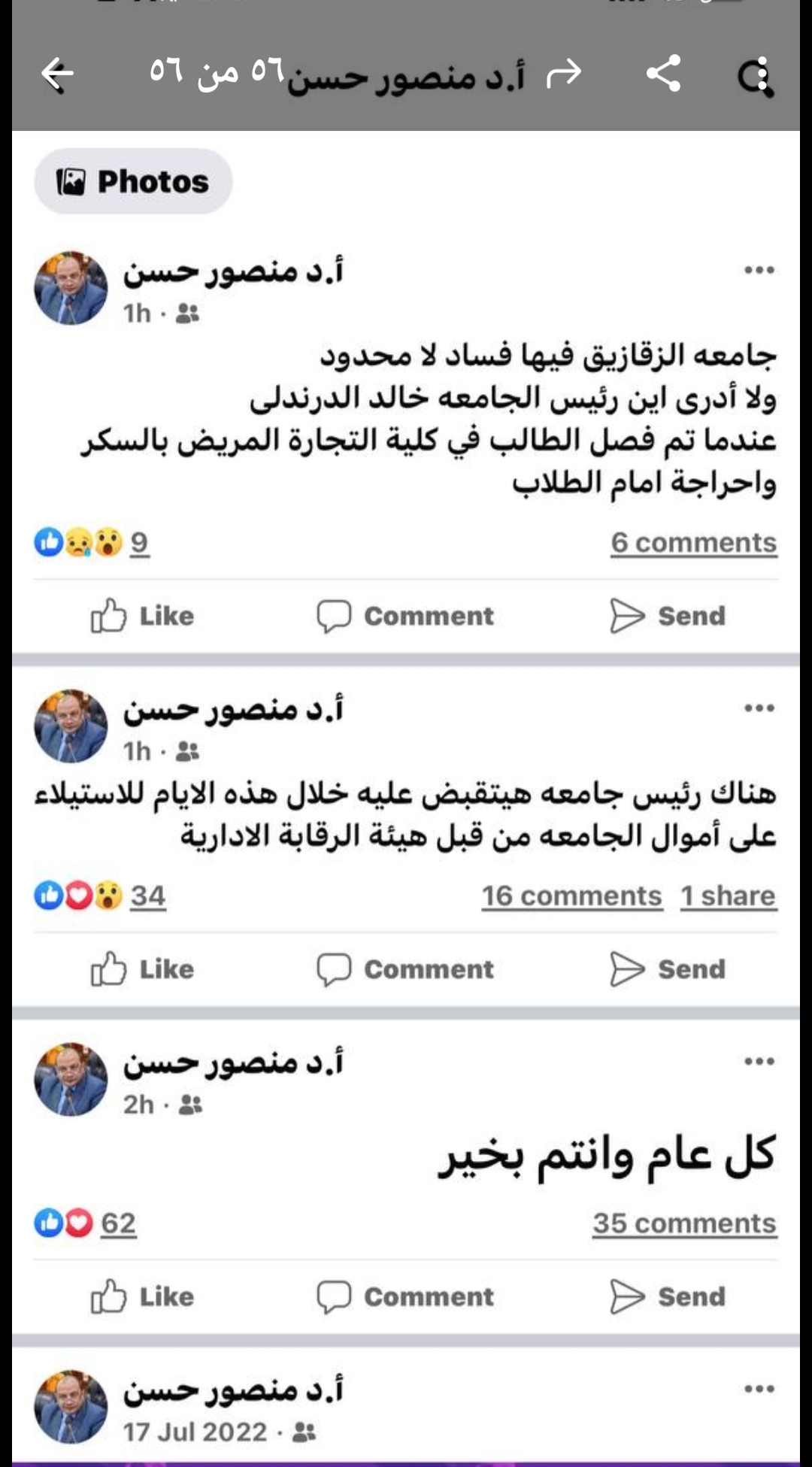 ..جامعة بني سويف تتخذ إجراءاتها القانونية ضد صفحة وهمية تنتحل اسم الدكتور منصور حسن رئيس الجامعة