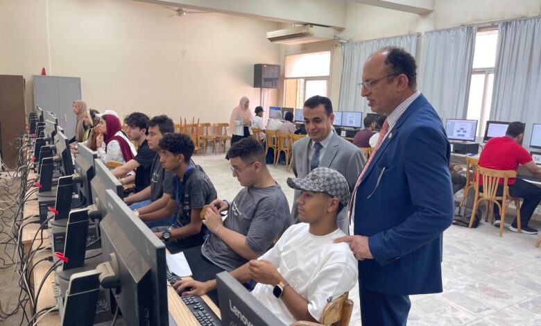 رئيس جامعة حلوان يتفقد اختبارات تحديد مستوى مهارات الحاسب الآلي للطلاب الجدد بكلية الحاسبات والذكاء الاصطناعي