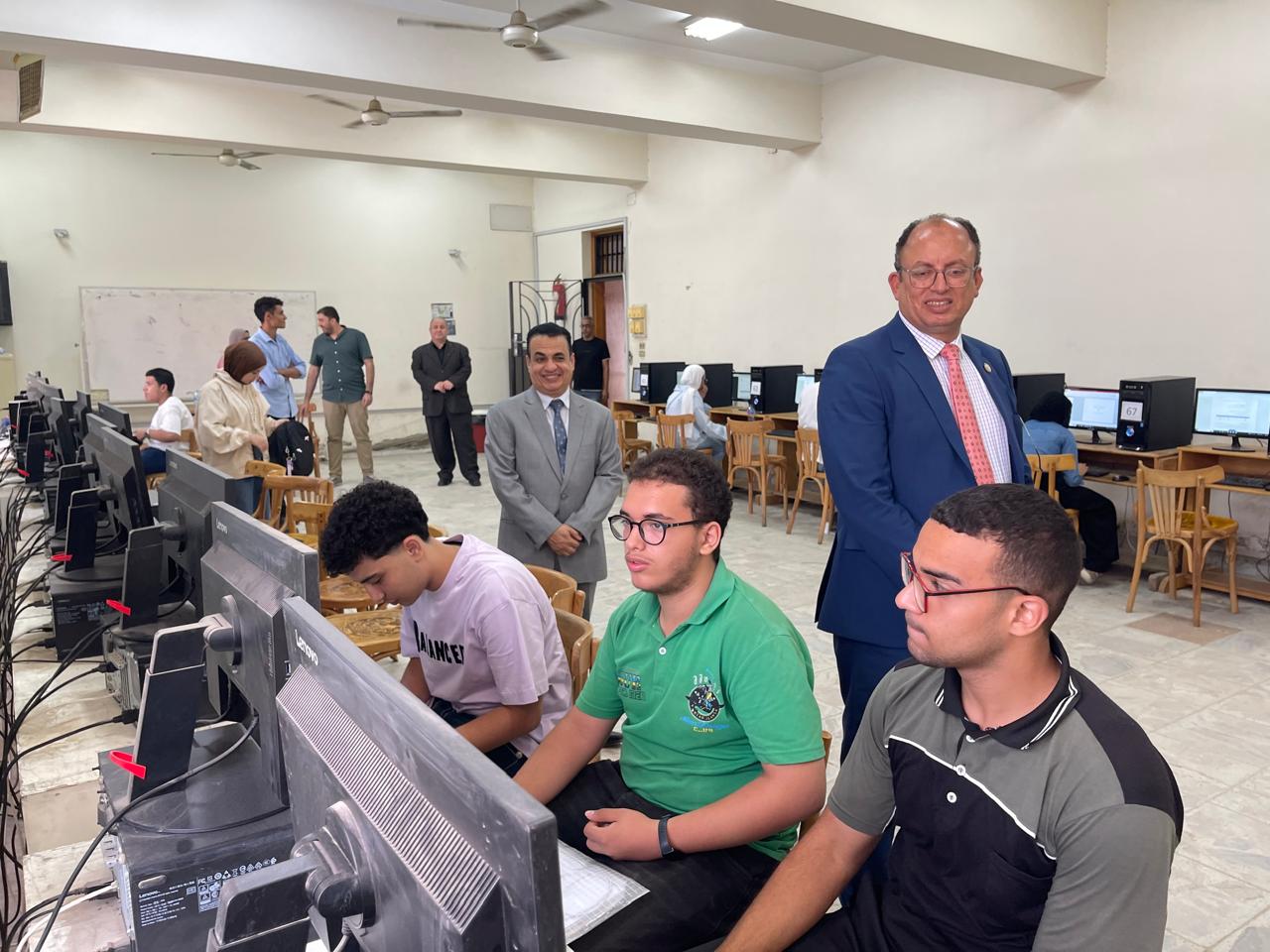 رئيس جامعة حلوان يتفقد اختبارات تحديد مستوى مهارات الحاسب الآلي للطلاب الجدد بكلية الحاسبات والذكاء الاصطناعي