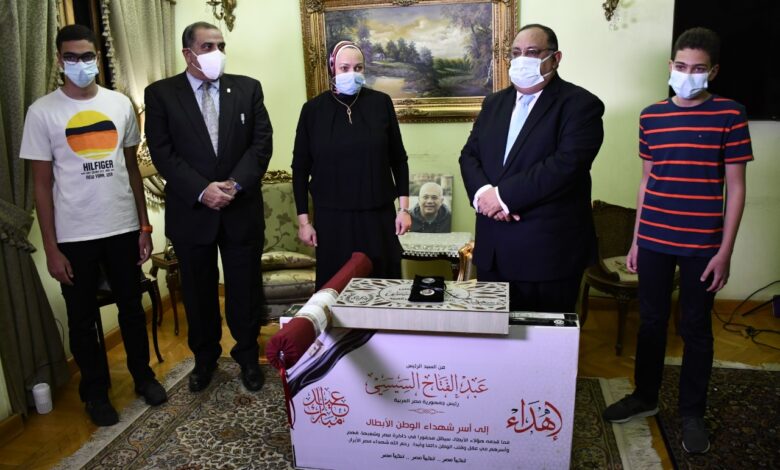 رئيس جامعة حلوان يزور أسرة الشهيد د.عمرو عبد العظيم من القطاع الطبي لتقديم هدية الرئيس السيسي