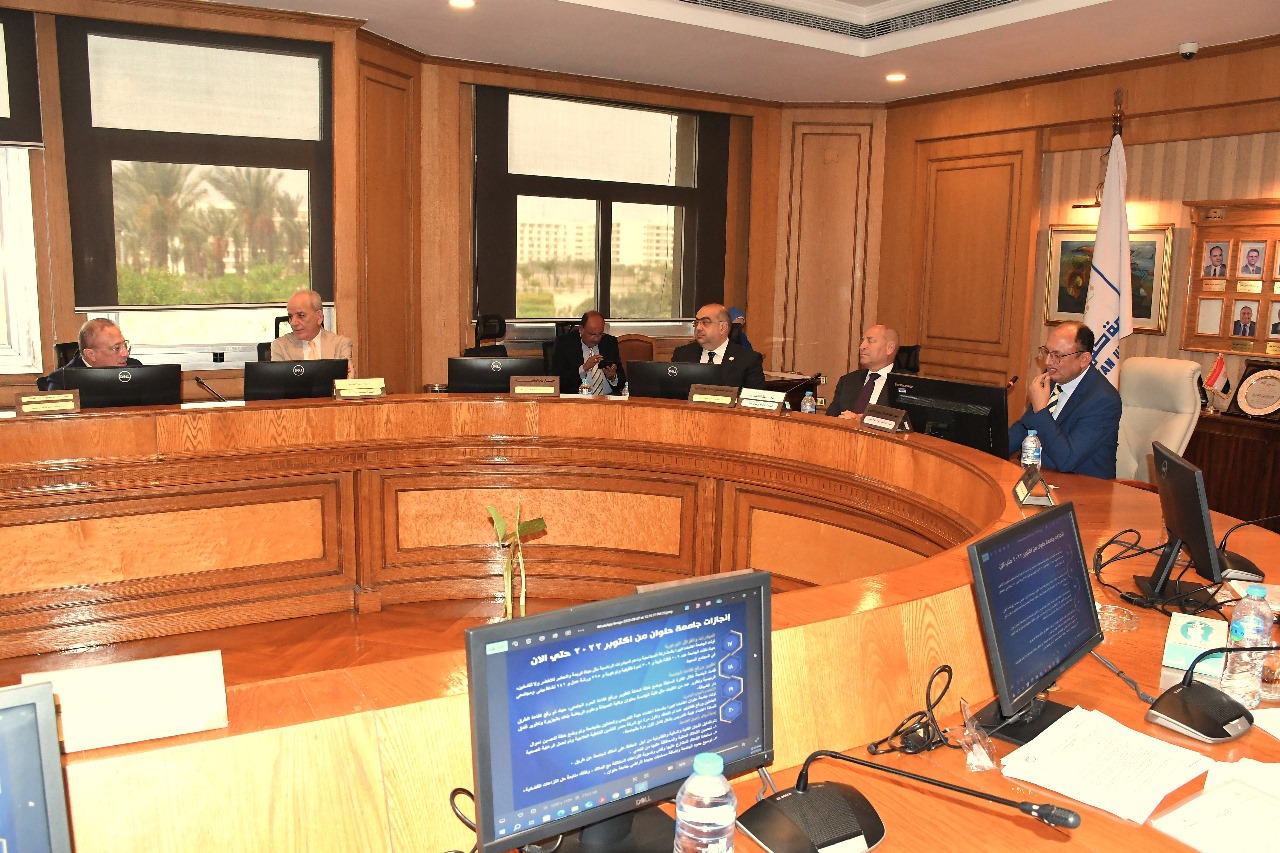 رئيس جامعة حلوان يستقبل محافظ القاهرة في اجتماع موسّع لمجلس الجامعة لمناقشة دعم الطلاب وتعزيز التعاون المؤسسي