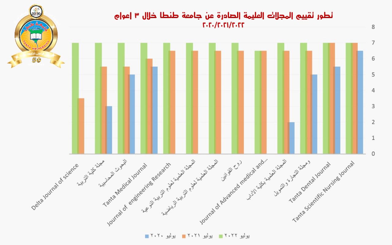 أعلن المجلس الأعلى للجامعات المصرية خلال تقريره السنوي الصادر في يوليو الجاري، عن حصول ١٢ مجلة علمية لجامعة طنطا على التقييم الأعلى من المجلس الأعلى للجامعات للمجلات العلمية المصرية لعام ٢٠٢٢.