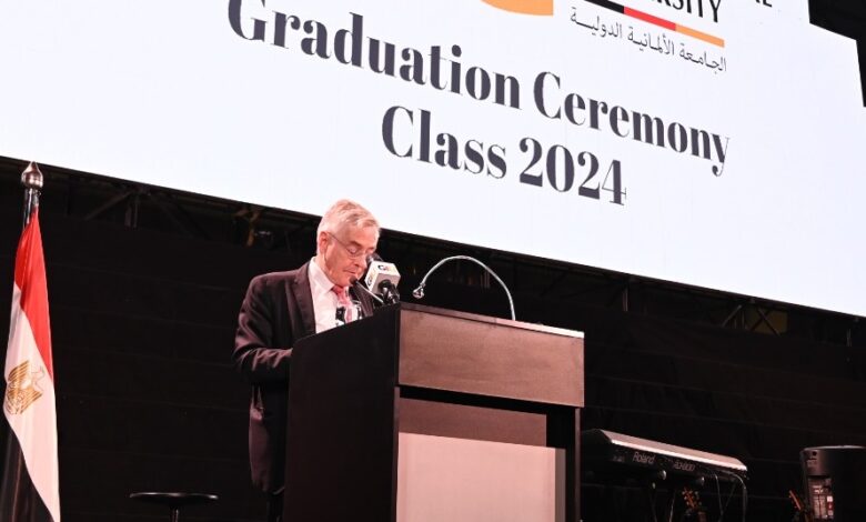 وقال يوليوس جورج لوى – – في كلمته خلال احتفال الجامعة الألمانية الدولية بالعاصمة الإدارية الجديدة بتخريج دفعة جديدة بحضور الدكتور أشرف منصور الرئيس المشارك لمجلس أمناء الجامعة الألمانية الدولية GIU والدكتور سليم عبدالناظر رئيس الجامعة وعدد من الشخصيات رفيعة المستوى من الجانبين المصري والألماني – إن الجامعة الألمانية الدولية تعتبر معلما أكاديميا وبحثيا متميزا في واحدة من أكبر المدن في قارة أفريقيا، موجها الشكر للدكتور أشرف منصور على حجم الجهد المبذول من أجل الوصول لتخريج طلاب متميزين على المستوى المعرفي والمهاري، وتوفير بيئة تعليمية متفردة من خلال برامج أكاديمية متطورة تتناسب مع احتياجات أسواق العمل المحلية والإقليمية والدولية، وخطط دراسية متكاملة وأعضاء هيئة تدريس متميزين يتم انتقاؤهم بعناية فائقة.