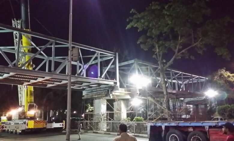رفع الجسم المعدنى لأعرض كبارى المشاه فى مصر لربط حرمى جامعة عين شمس