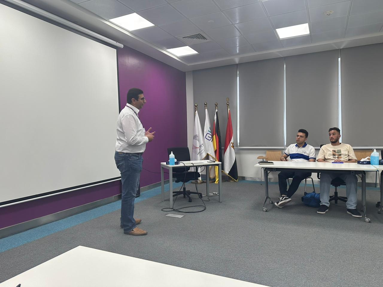 استقبل المهندس اسلام ضلول مدير الأكاديمية المصرية الالمانية للتدريب التقني السادة المشاركين بوفد الجامعة والبالغ عددهم ٢٥ طالب تحت إشراف أ.م.د/ أسامة أبوالنصر، د.ايمان أشرف، والمهندس عابد ربيع،والمهندس جمال عبدالناصر، والمهندسةإيمان عصام.