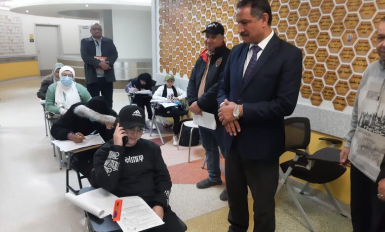وخلال متابعته اطمأن سيادته على سير العملية الامتحانية واتباع كافة الإجراءات الاحترازية داخل اللجان ، وشدد سيادته على منع دخول الهاتف المحمول داخل اللجان سواءً للطلبة أو الملاحظين أو أي من العاملين داخل اللجان حتى ولو كان مغلقا