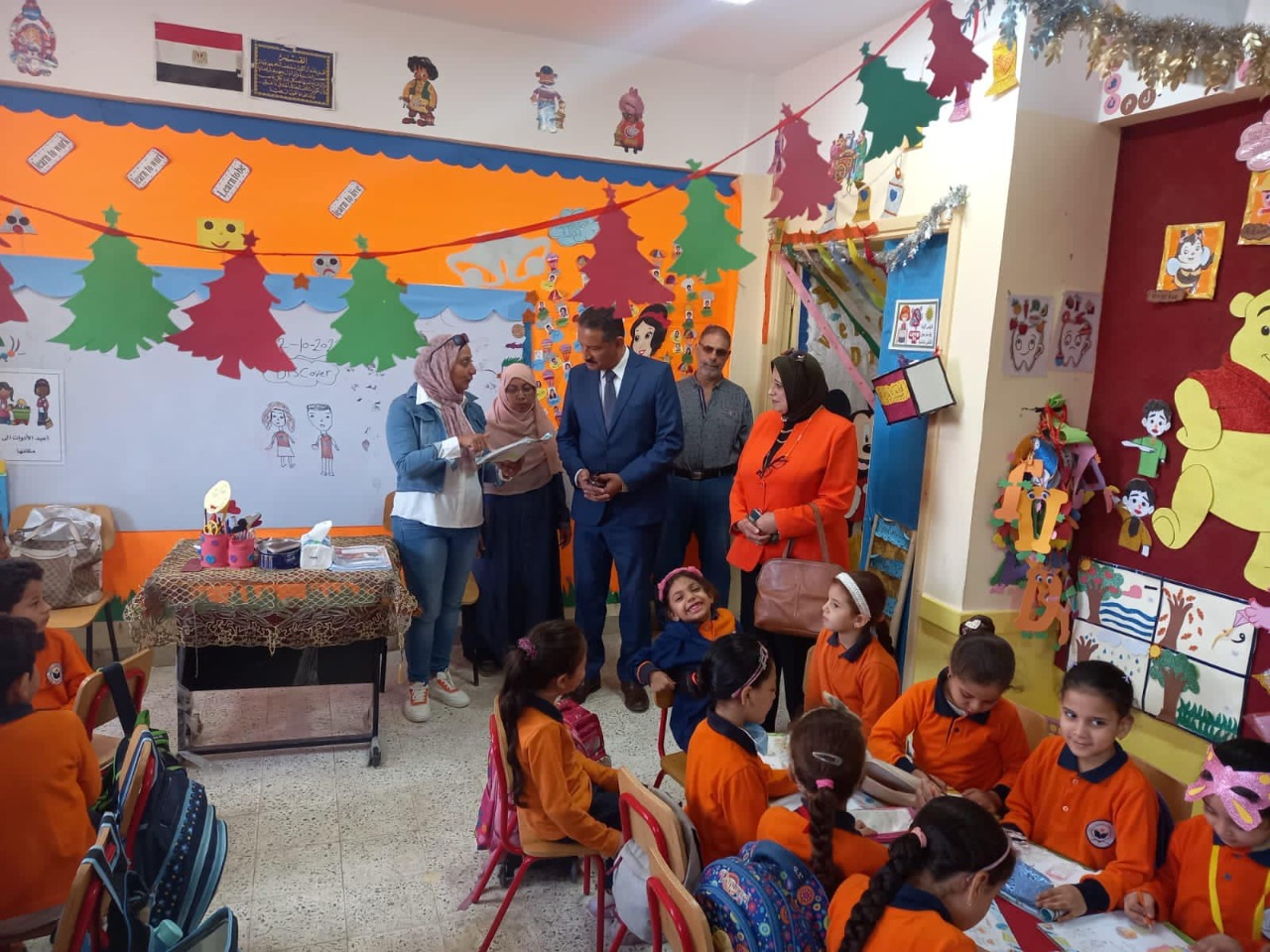 كما تم خلال الزيارة متابعة دورات المياه والفناء والفصول أثناء الحصص وفحص سجلات المعلمين، وفصول رياض الأطفال.