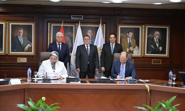 وقع بروتوكول التعاون، الدكتورة لبنى محمد فريد عميد كلية التجارة، والدكتور عبد العزيز نصير المدير التنفيذي للمعهد المصرفي المصري الذراع التدريبي للبنك المركزي المصري.