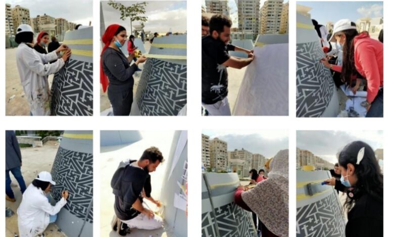 حيث قامت الكليات الفنية المشاركة بأعمال تجميل بعض أحواض النباتات في مدخل متحف الحضارة المصرية بعين الصيرة ببعض الوحدات الزخرفية من الفنون المصرية المختلفة.. الفرعونية.. الإسلامية.. الشعبية.. القبطية.