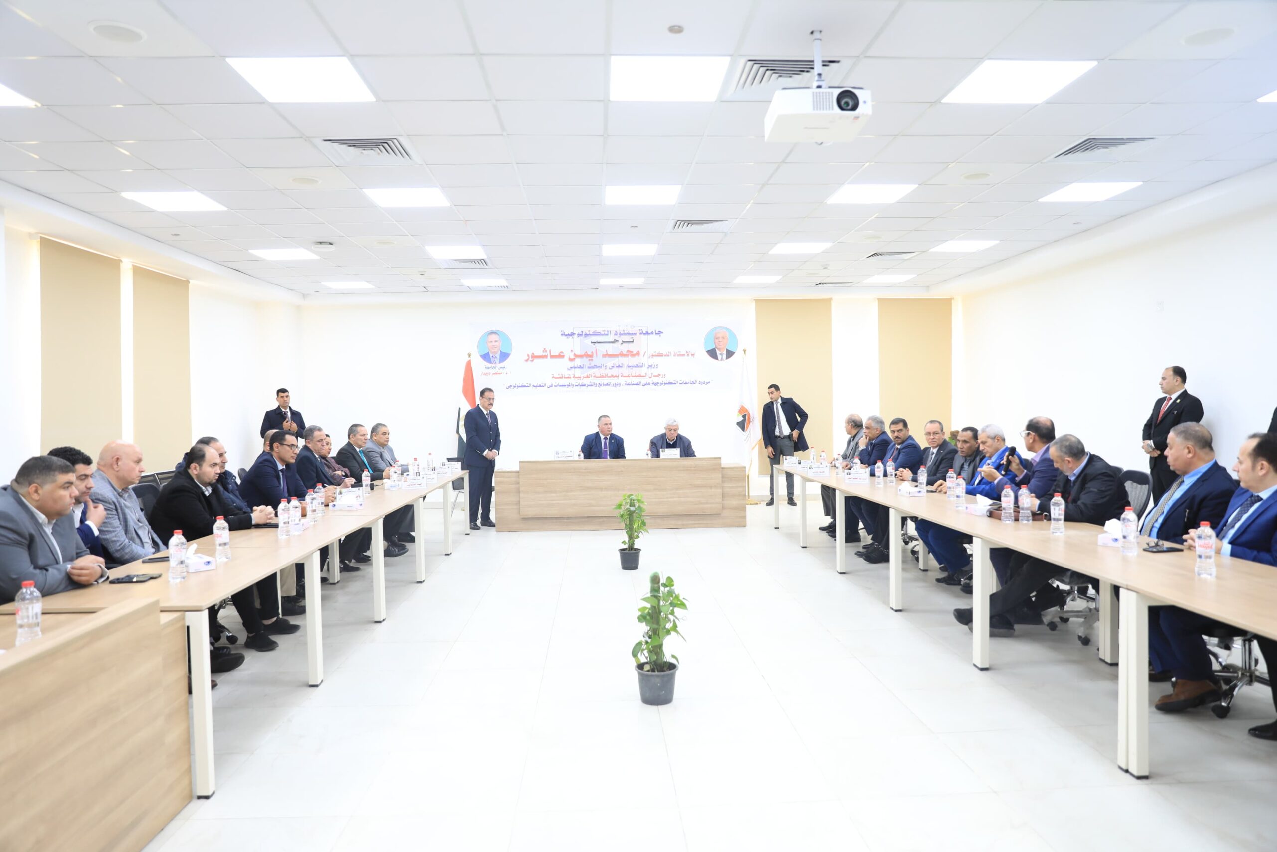 وفي بداية الاجتماع، ثمن الدكتور أيمن عاشور الدعم غير المسبوق الذي قدمه السيد الرئيس عبدالفتاح السيسي رئيس الجمهورية للتوسع في إنشاء الجامعات التكنولوجية بمختلف أنحاء الجمهورية؛ بهدف توطين التكنولوجيا، وسد الفجوة المتعلقة بتوافر التقنيين، والتكنولوجيين، والأيدي العاملة الماهرة المتخصصة بالمجالات التكنولوجية المختلفة.