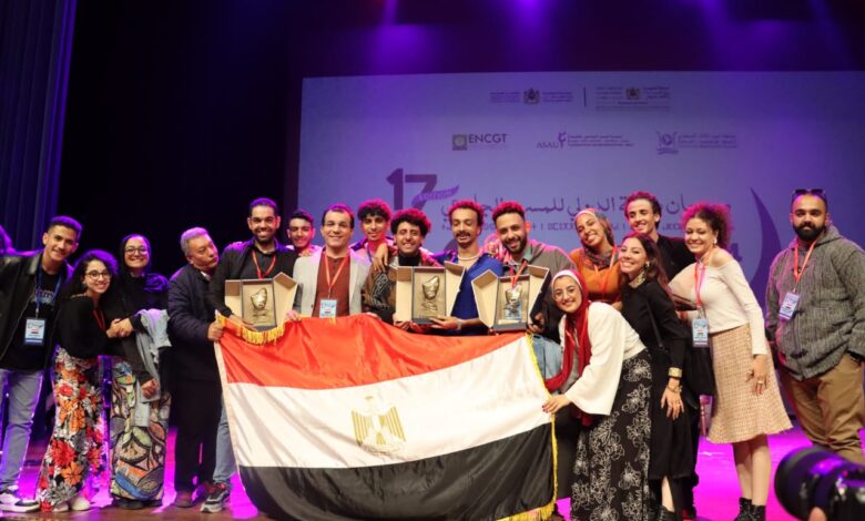 فريق جامعة عين شمس للمسرح يحصد ثلاث جوائز في مهرجان طنجه الدولى للمسرح الجامعي بالمغرب في دورته ال ١٧