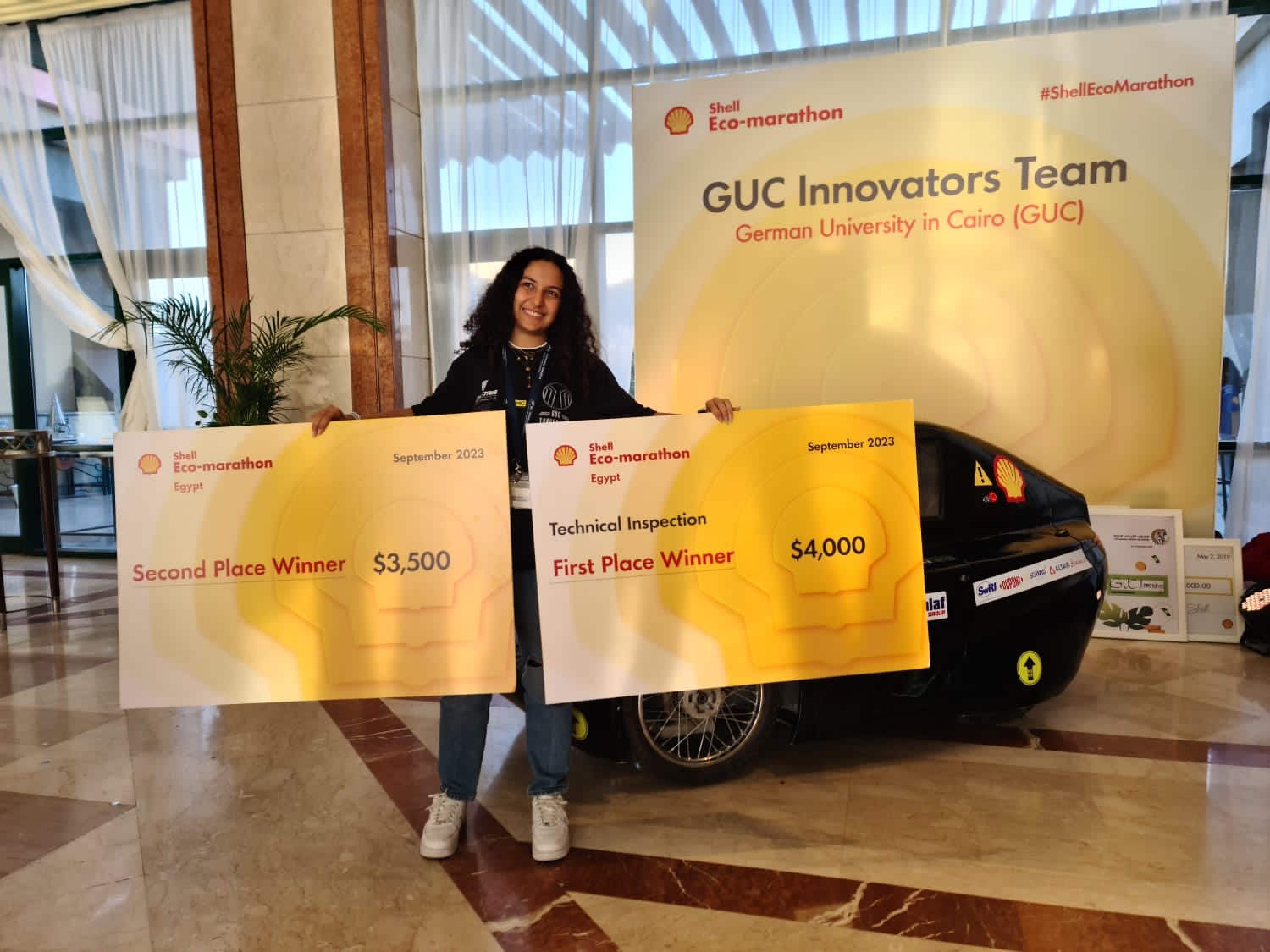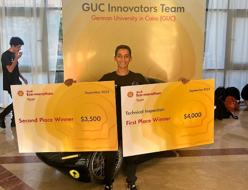 فاز فريق مبتكري هندسة الجامعة الألمانية بالقاهرة GUC innovators team في النسخة المحلية من مسابقة شل البيئي التنافسية 2023ضمن 9 جامعات مصرية بالمركز الأول في الفحص الفني لسيارتهم الكهربائية ذات الراكب الواحد ، وبالمركز الثاني في العرض التقديمي الخاص بتوضيح ما تتميز به السيارة المشاركة من حيث إبراز العناصر التي تميزها عن غيرها و مدى مطابقاتها لكافة المواصفات والمعايير العالمية ، وتشكل فريق الجامعة في هذه المسابقة من الطلاب محمد فرغل ، محمد محسن ، محمد عباس ، حازم أشرف ، مصطفى ريحان ، ياسر خالد ، يوسف أبو الدهب ، محمد ياسر ، مصطفى أبو المجد ، عمر العربي ، ندى وائل ، ندى تامر ، سلمى ياسر بإشراف الدكتور هشام الشريف رئيس قسم الهندسة الصناعية بكلية هندسة و علوم المواد .