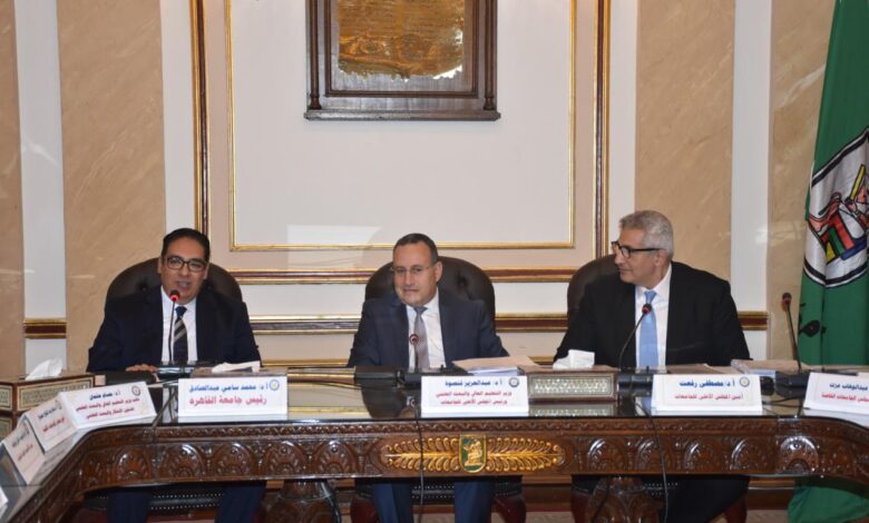 وقدم المجلس الشكر لأسرة جامعة القاهرة، برئاسة الدكتور محمد سامي عبدالصادق، رئيس الجامعة، على استضافة اجتماع المجلس الأعلى للجامعات.