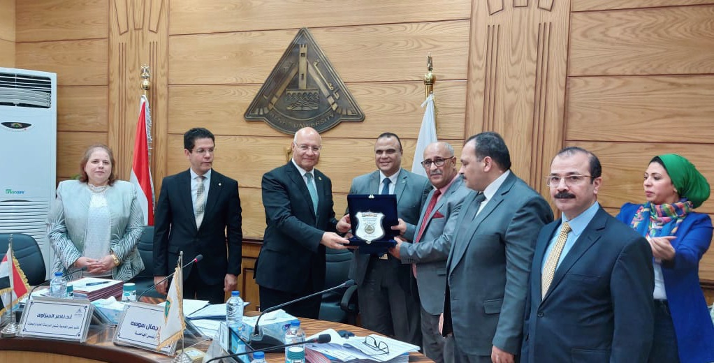 عقد مجلس جامعة بنها اجتماعه برئاسة الدكتور جمال سوسه رئيس الجامعة ، وبحضور الدكتور ناصر الجيزاوي نائب رئيس الجامعة لشئون الدراسات العليا والبحوث ، والدكتور تامر سمير نائب رئيس الجامعة لشئون التعليم والطلاب ، والدكتور السيد فوده نائب رئيس الجامعة لشئون خدمة المجتمع وتنمية البيئة ، وعمداء الكليات ، والأستاذة شيرين شوقى أمين عام المجلس ، وأعضاء المجلس ، والأمناء المساعدين.