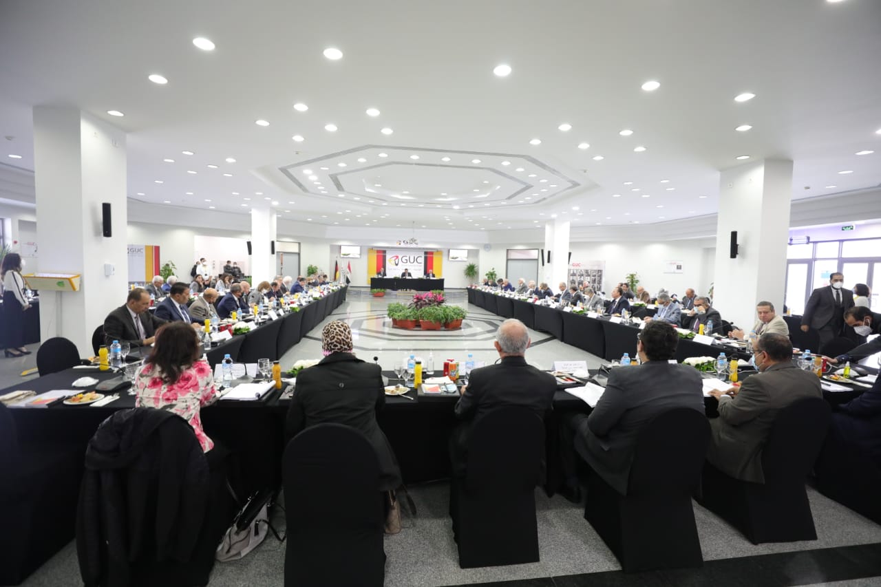 في البداية، قدم المجلس الشُكر لأسرة الجامعة الألمانية بالقاهرة، برئاسة د.أشرف منصور رئيس مجلس الأمناء، ود. ياسر حجازي رئيس الجامعة، على استضافة المجلس.