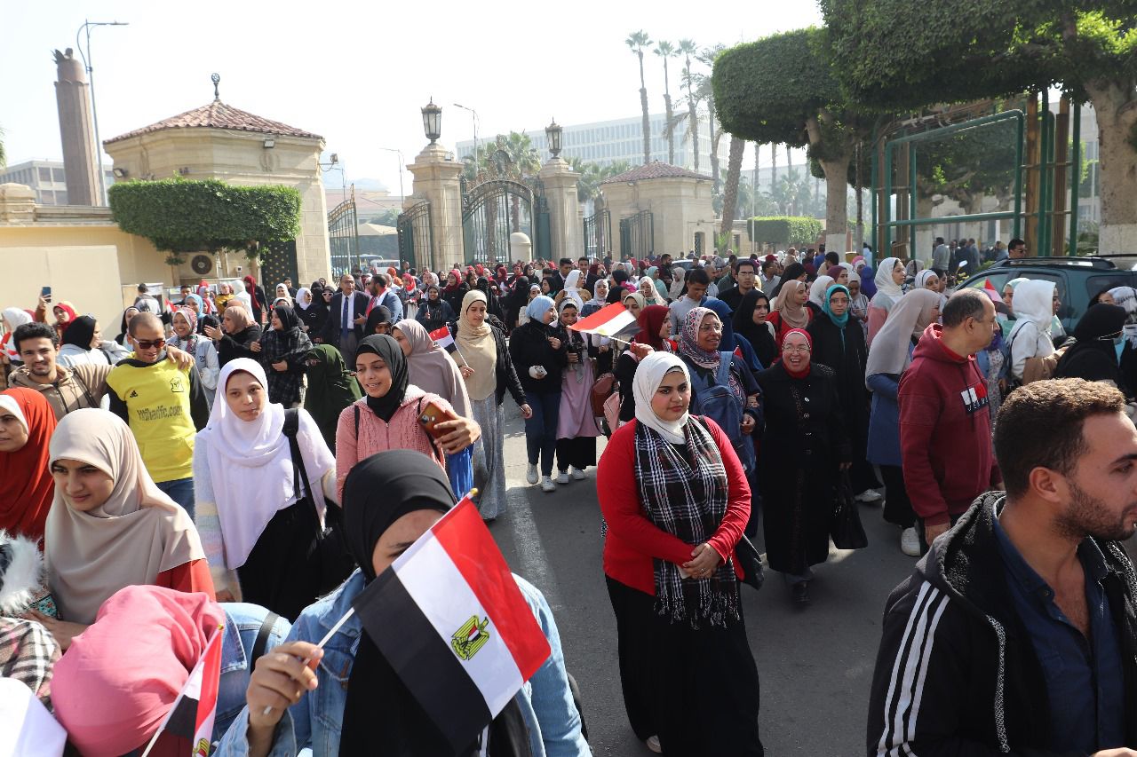 في اليوم الثاني من الانتخابات الرئاسية .. جامعة القاهرة تواصل تنظيم مسيرات حاشدة من منتسبيها للإدلاء بأصواتهم في انتخابات الرئاسة المصرية 2024