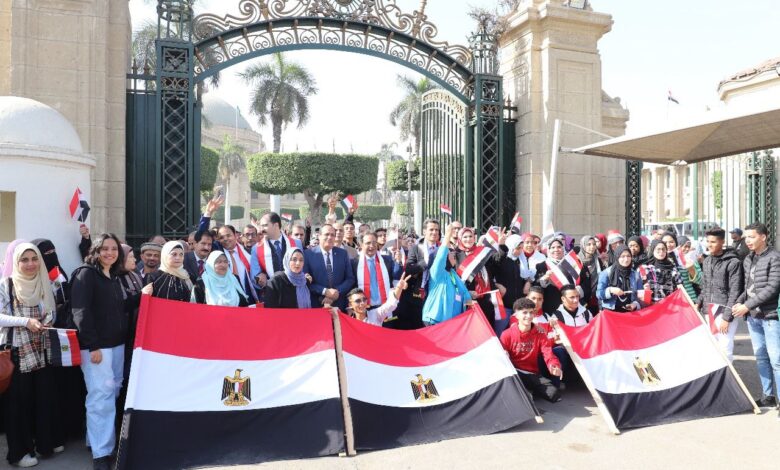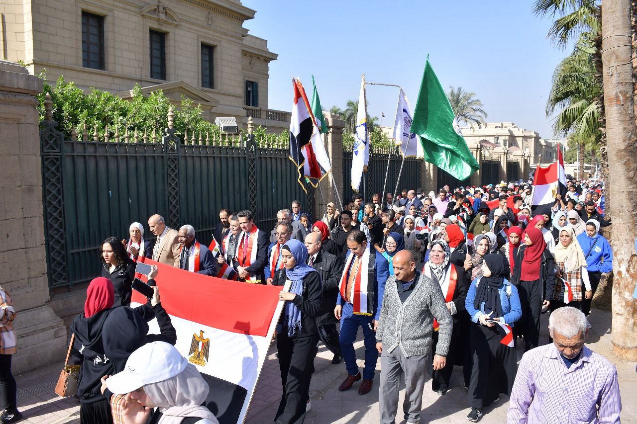 منتسبي جامعة القاهرة يشكلون ملحمة في حب مصر ويؤكدون ضرورة الاصطفاف حول الوطن