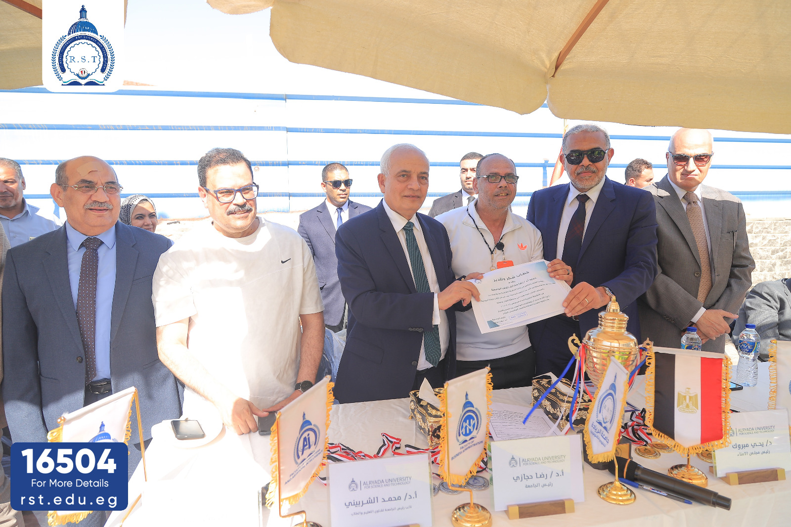وفي نهاية الاحتفال سلم الدكتور يحيي مبروك والاستاذ رضا حجازي الكأس للفريق الفائز وتوزيع الميداليات علي الفريقين وشهادات تقدير وجوائز مالية للطالب عمر عويس الفائز بالمركز الثاني في مجال الشعر العامي ومحمد كرم ابوعجيلة الفائز بالمركز الثالث في الشعر الغنائي خلال مشاركتهم في الملتقي الأول لجامعات اقليم الدليا وتسلم الاستاذ سعيد عبد العظيم مدير عام ادارة الانشطة الطلابية بالجامعة شهادة تقدير لدور الادارة المتميز في حصولها علي البرونزية في مسابقة افضل جامعة في الانشطة الطلابية .