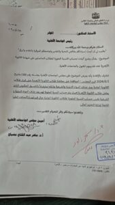 بعدها تسلم د0ماهر مصباح مسئولية أمانة مجلس الجامعات الأهلية بعد إستقلاله عن مجلس الجامعات الخاصة والأهلية فأرسل له د0منصور حسن المشرف على جامعة بنى سويف الأهلية فى ذلك الوقت خطابا فى 10مارس 2024 بشأن موضوع هؤلاء الطلاب وأنه قد تم قبولهم طبقا لما هو متبع بالمجلس الأعلى للجامعات بشأن طلاب الثانويةالأزهرية بعد إستبعاد درجات المواد الدينية والشرعية وأنه قد تم قبولهم طبقا للحدود الدنيا الواردة من المجلس الأعلى للجامعات ، وبالفعل تم مناقش قضية هؤلاء الطلاب وغيرهم من طلاب الثانوية الأزهرية فى مجلس الجامعات الأهلية فى شهر يونية2024 بجلسته رقم 10 بتاريخ 2 يونية 2024 وتم إرسال قرار المجلس لجامعة بنى سويف الأهلية وبقية الجامعات الأهلية فى شهر أغسطس 2024 والذى ينص على معاملتهم على غرار مجموع طلاب الثانوية العامة بعد خصم درجات المواد الدينية وقال القرار ” أنه بعرض الموضوع على مجلس الجامعات الأهلية بجلسته رقم 10بتاريخ 2 يونية2024 قرر الموافقةعلى معاملة طلاب الثانوية الأزهرية على غرار طلاب الثانوية العامة بعد حذف المواد الدينية والشرعية إسترشادا بالتنسيق الحكومى الذى يعامل طلاب الثانوية الأزهرية بحيث يتم حساب النسبة المئوية لهم بعد حذف المواد الدينية والشرعية نفس حساب النسبة المئوية لطلاب الثانوية العامة حال قبولهم فى المعاهد العليا التابعة لوزارة التعليم العالى 0